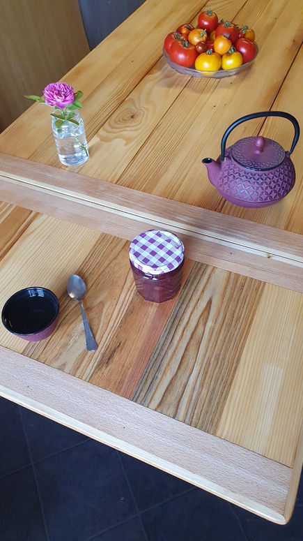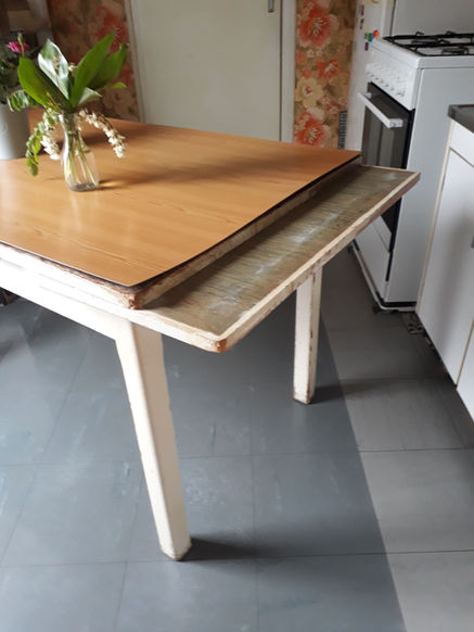 Rénovation d'une table de cuisine, en hêtre et pin, avec rallonges :